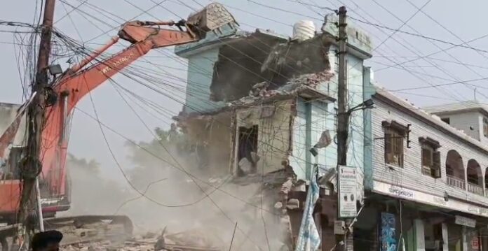 हल्द्वानी के ऊंचापुल में सिंचाई नहर पर बनाई बिल्डिंग पर चला बुलडोजर, देखें वीडियो