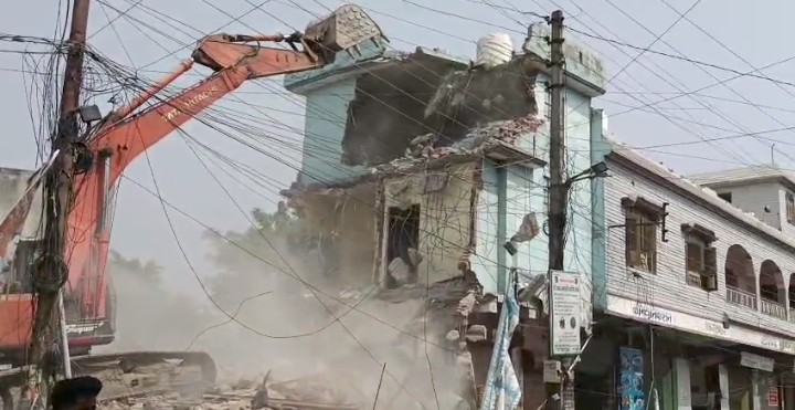 नैनीताल जिले के हल्द्वानी में ऊंचा पुल पर सिंचाई विभाग की नहर में बनी दो मंजिली बिल्डिंग को गुरुवार दोपहर में जेसीबी और पोकलेन मशीन से ध्वस्त किया गया। इस दौरान सिटी मजिस्ट्रेट एपी वाजपेई और नगर आयुक्त परितोष वर्मा मौजूद रहे। अभियान के दौरान पुलिस बल भी तैनात रहा। यहां चौराहे का चौड़ीकरण किया जाना है।