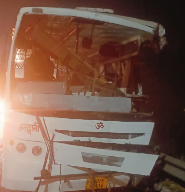 दिल्ली से लौट रही रोडवेज बस बीती शनिवार की देर रात मुरादाबाद बाईपास में सड़क किनारे खड़ी ट्रैक्टर ट्राली से जा टकरा गई। हादसे से बस में सवार यात्रियों में चीख-पुकार मच गई। जानकारी के अनुसार हल्द्वानी डिपो की अनुबंधित बस यूके07pa 5114 के दुर्घटना ग्रस्त होने से चालक समेत पांच यात्री चोटिल हो गए। प्राथमिक उपचार के बाद सभी हल्द्वानी लौट आए। डिपो अधिकारियों के अनुसार बस में 15 यात्री सवार थे, कोई जनहानि नहीं हुई है।