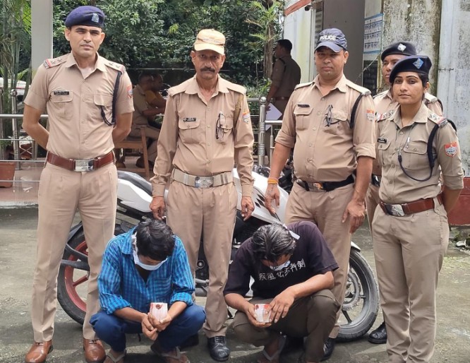 पुलिस टीम द्वारा थाना चोरगलिया से चार सौ मीटर चोरगालिया की ओर वाहन चेकिंग के दौरान अभियुक्त जीवन सिंह बिष्ट, निवासी कटघरिया चौराहा, थाना मुखानी जनपद नैनीताल को 9.24 ग्राम स्मैक तथा अभियुक्त महेंद्र सिंह अन्ना, निवासी ऊंचापुल, थाना मुखानी जनपद नैनीताल को 9.46 ग्राम स्मैक व वाहन UK04AL-1676 से परिवहन करते हुए गिरफ्तार किया। इस संबंध में थाना चोरगलिया पर FIR नंबर 87/2025 धारा 8/21/60 NDPS एक्ट में अभियोग पंजीकृत किया गया। पुलिस टीम में एसआई निधि शर्मा, हेड कांस्टेबल मनजीत सिंह, जगदीश सिंह, कांस्टेबल भारत भूषण, अंकुश चन्याल आदि शामिल रहे।