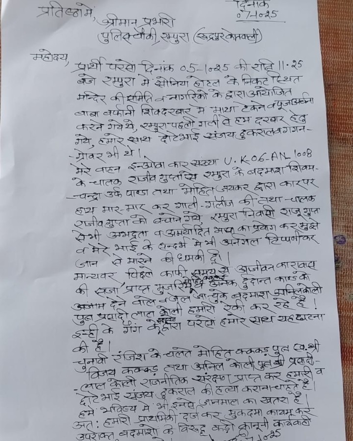 पूर्व विधायक के सामने लहराए तमंचे, चालक ने पुलिस को सौंपी तहरीर