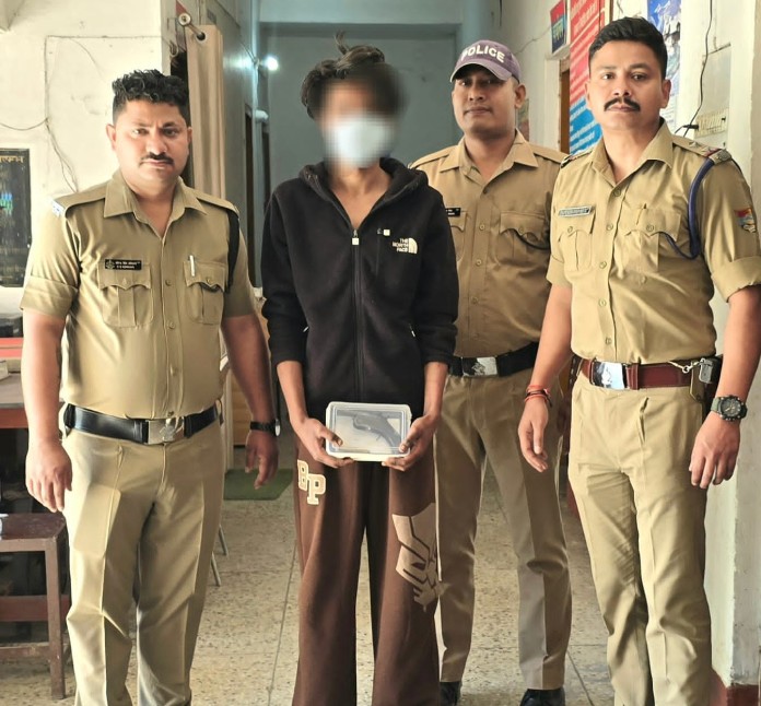 सोशल मीडिया पर अवैध तमंचे के साथ फोटो पोस्ट कर शहर में दहशत फैलाने वाले युवक को हल्द्वानी पुलिस ने त्वरित कार्यवाही करते हुए गिरफ्तार किया है। एक युवक द्वारा सोशल मीडिया पर तमंचे के साथ फोटो डालकर हल्द्वानी क्षेत्र में भय का माहौल बनाने का प्रयास किया गया। इस प्रकरण को गंभीरता से लेते हुए डॉ.मंजुनाथ टीसी, वरिष्ठ पुलिस अधीक्षक नैनीताल द्वारा सख्त कानूनी कार्यवाही के निर्देश दिए गए। उक्त आदेश के क्रम में मनोज कत्याल पुलिस अधीक्षक हल्द्वानी एवं अमित कुमार सैनी के पर्यवेक्षण में विजय सिंह मेहता, प्रभारी निरीक्षक कोतवाली हल्द्वानी के नेतृत्व में गठित पुलिस टीम द्वारा *दिनांक 01.04.2026 को अभियुक्त को क्रियाशाला के पास हल्द्वानी क्षेत्र से गिरफ्तार किया गया।