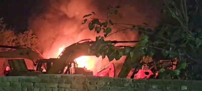 नैनीताल जिले के हल्द्वानी में बरेली रोड स्थित एक प्रतिष्ठित मोटर्स शोरूम के बगल मे शनिवार की देर रात आग लग गई। सूचना के मुताबिक एक इंजीनियरिंग वर्कस के अन्दर खड़ी क्रेन में भीषण आग लगी थी। सूचना पर पुलिस और दमकल वाहन पहुंचा। बताया गया कि लाखों का नुकसान हुआ है।