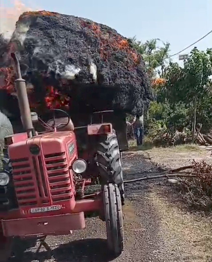 नैनीताल जिले के गौलापार में गेहूं से भरी ट्रैक्टर ट्राली में आग लग गई। चालक ने जैसे तैसे वाहन को सुरक्षित निकाला। अनुमान है कि बिजली लाइन की चिंगारी से यह घटना हो सकती है। किसान को गेहूं राख होने से खासा नुकसान हुआ है।