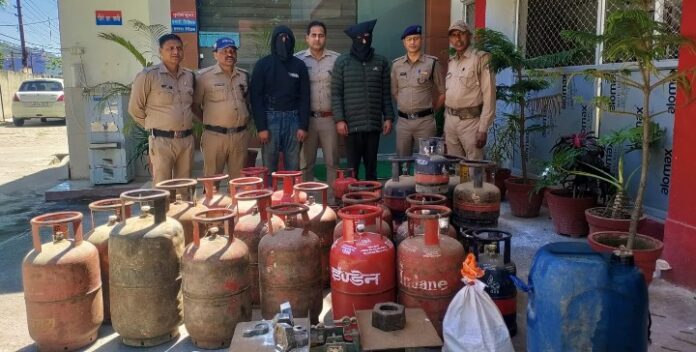 मौके से अवैध रिफिलिंग करते हुए दो अभियुक्तों को गिरफ्तार किया गया।