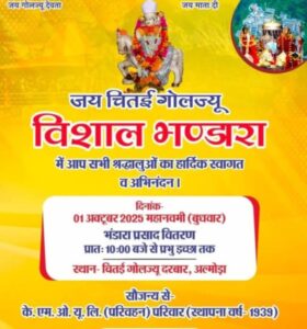 चितई गोलज्यू मंदिर में केमू बस स्वामियों ने भंडारा लगा प्रसाद बांटा