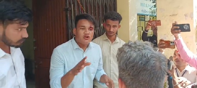 नैनीताल जिले के हल्द्वानी एमबीपीजी कॉलेज में मतदान के दौरान शनिवार 27 सितंबर को छात्रसंघ उप सचिव मनोज बिष्ट से मारपीट कर दी। चुनाव के दौरान कालेज के बाहर छात्रों ने अराजकता का माहौल बना रखा था। सुरक्षा के मद्देनजर एसपी सिटी जगदीश चंद्र, सीओ नितिन लोहनी, कोतवाल अमर चंद्र शर्मा समेत भारी पुलिस फोर्स तैनात रहा। कालेज प्रबंधन के अनुसार करीब 13 हजार छात्रों में से 3031 ने वोट डाले।