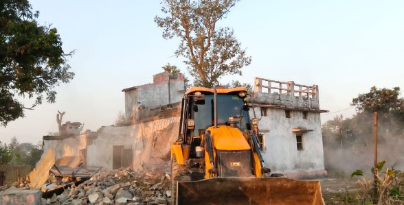 ✔️ सुबह तड़के भारी पुलिस बल, प्रशासनिक टीम और JCB मशीनों के साथ मौके पर पहुँचकर *अवैध निर्माणों को ध्वस्त किया गया।*