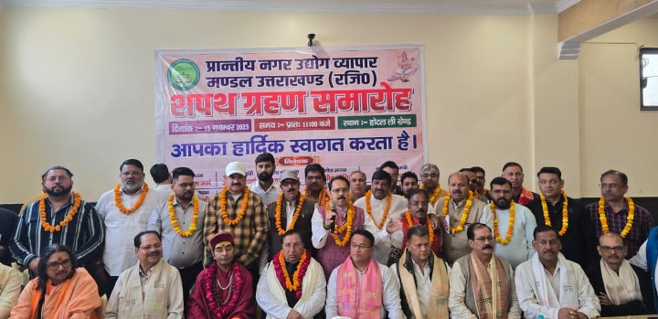 प्रांतीय नगर उद्योग व्यापार मंडल की जिला इकाई, शहर इकाई और तहसील इकाई हरिद्वार के शपथ ग्रहण समारोह में मुख्य अतिथि राज्यसभा सांसद नरेश बंसल ने सभी पदाधिकारियों को पद और गोपनीयता की शपथ दिलाई और व्यापारी बंधु को संबोधित करते हुए कहा कि सभी पदाधिकारी अपने पद और गरिमा के अनुरूप कार्य करे तथा प्रत्येक व्यापारी की समस्या के निराकरण के लिए तत्पर रहे और राज्य स्तरीय समस्या के लिए संगठन के पदाधिकारियो को मुख्यमन्त्री से मिलकर हल करवाया जायेगा। प्रदेश संगठन प्रभारी वीरेंद्र गुप्ता ने कहा कि हरिद्वार में व्यापारी राजनीति एक नई दिशा और दसा तय करेगी कि आज से लगभग 40 वर्ष पूर्व जब व्यापारी वर्ग शासन प्रशासन के उत्पीड़न से काफी प्रताड़ित था और व्यापारी बंधु को *असामाजिक तत्वों द्वारा डराया धमकाया जाता था तो इन सभी समस्याओं से छुटकारा कैसे मिले हमारे वरिष्ठजनों द्वारा ही व्यापारियों को एकजुट करने का बृहद प्रयास किया गया और उनकी अपार मेहनत का परिणाम ही हे कि आज व्यापार मंडल अपने आप एक ऐसा संगठन वृहद रूप ले चुका हे कि शासन प्रशासन के साथ साथ राजनीतिक दलों को भी व्यापार मंडल का सहयोग लेना* *पड़ता हे जो कि व्यापारी राजनीति का ही परिणाम हे कि आज व्यापारी राजनीति से होकर देश भर में कई सांसद विधायक* *मेयर और कई अन्य पदों में दायित्वों संभालने का सुनहरा अवसर पा चुके हे और भविष्य मे भी यह क्रम जारी रहेगा। बड़ा सौभाग्य हे कि 40 वर्ष पूर्व जिन वरिष्ठजन द्वारा व्यापारी हितों के लिए व्यापार मंडल का गठन किया गया था उन सदस्यों में काफी सदस्य प्रांतीय नगर उद्योग व्यापार मंडल के साथ कंधे से कंधा मिलाकर अपना आशीर्वाद और सहयोग प्रदान कर रहे है और आगे भी रहेगा। जिला अध्यक्ष डा.विशाल गर्ग ने सभी अतिथियों का स्वागत किया और आभार व्यक्त किया। शपथ ग्रहण समारोह मे प्रमुख रूप से राज्य सभा सांसद नरेश बंसल संगठन के प्रदेश उपाध्यक्ष शिव कुमार कश्यप प्रदेश महामन्त्री राजेंद्र फर्सवान महानगर अध्यक्ष राजीव अग्रवाल प्रदेश संगठन प्रभारी वीरेंद्र गुप्ता प्रदेश कोषाध्यक्ष पूरन लाल शाह, रणनीति सलाहकार दीपक माहेश्वरी प्रदेश सचिव मयंकमूर्ति भट्ट अश्वनी शर्मा अजय अरोड़ा अधीर कोशिक आदेश माखाडी मनोज सिरोही प्रवीन शर्मा विमल शर्मा अनुज गुप्ता समेत 250 व्यापारी उपस्थित थे।