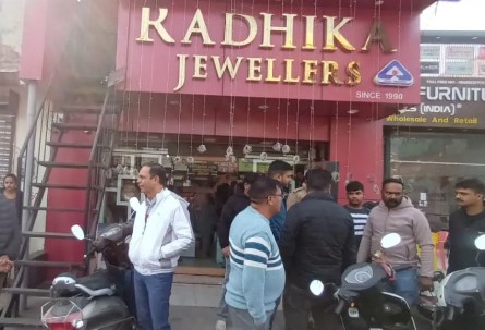 नैनीताल जिले के हल्द्वानी में मुखानी थाना क्षेत्र में शनिवार की देर रात राधिका ज्वैलर्स में लाखों के सोने और चांदी के जेवरात उड़ा लिए गए। कुसुमखेड़ा स्थित ज्वैलर्स शाप में चोर पीछे के रास्ते से अंदर घुसे और वारदात को अंजाम दिया। घटना का पता चलते ही पुलिस महकमे में हड़कंप मच गया। पुलिस के अधिकारियों के साथ ही मुखानी थाना पुलिस और फोरेंसिक टीम भी मौके पर पहुंच छानबीन में जुट गई है। आज रविवार 21 दिसंबर की सुबह कुसुमखेड़ा चौराहे के पास कालाढूंगी मुख्य सड़क में राधिका ज्वेलर्स स्वामी ने जब दुकान खोली तब हड़कंप मच गया। दरअसल चोर राधिका ज्वेलर्स की दुकान की समीप दूसरी दुकान से उनके वहां घुसे। दरअसल ज्वेलर्स शोरूम के बगल में ही एक व्यापारी ने किराए पर दुकान ली है। वह इसको कपड़े का शोरूम बनाना चाह रहे थे। इसको लेकर रात दिन उनकी दुकान में कारपेंटर काम कर रहे थे। ज्वैलर्स शाप के स्वामी नवनीत शर्मा ने बताया कि दुकान में बने 11 शोकेस में सोने व चांदी के आभूषण सभी गायब हैं। हालांकि वह अभी कितना सामान गायब हुआ है इसका अंदाजा नहीं लग पा रहे हैं। फिर भी उनका कहना है कि 25 किलो चांदी व 400 ग्राम सोना गायब हुआ है। चोरी गये माल की कीमत करीब डेढ़ करोड़ बताई गई है।