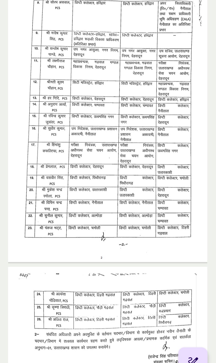 उत्तराखंड छह आईएएस और 26 पीसीएस अधिकारियों के तबादले, देखें सूची By समाचार शगुन डेस्क - April 17, 2026 0 135 FacebookTwitterPinterestWhatsApp समाचार शगुन हल्द्वानी उत्तराखंड शासन ने शुक्रवार की देरशाम छह आईएएस और 26 पीसीएस अफसरों के तबादले किए हैं।